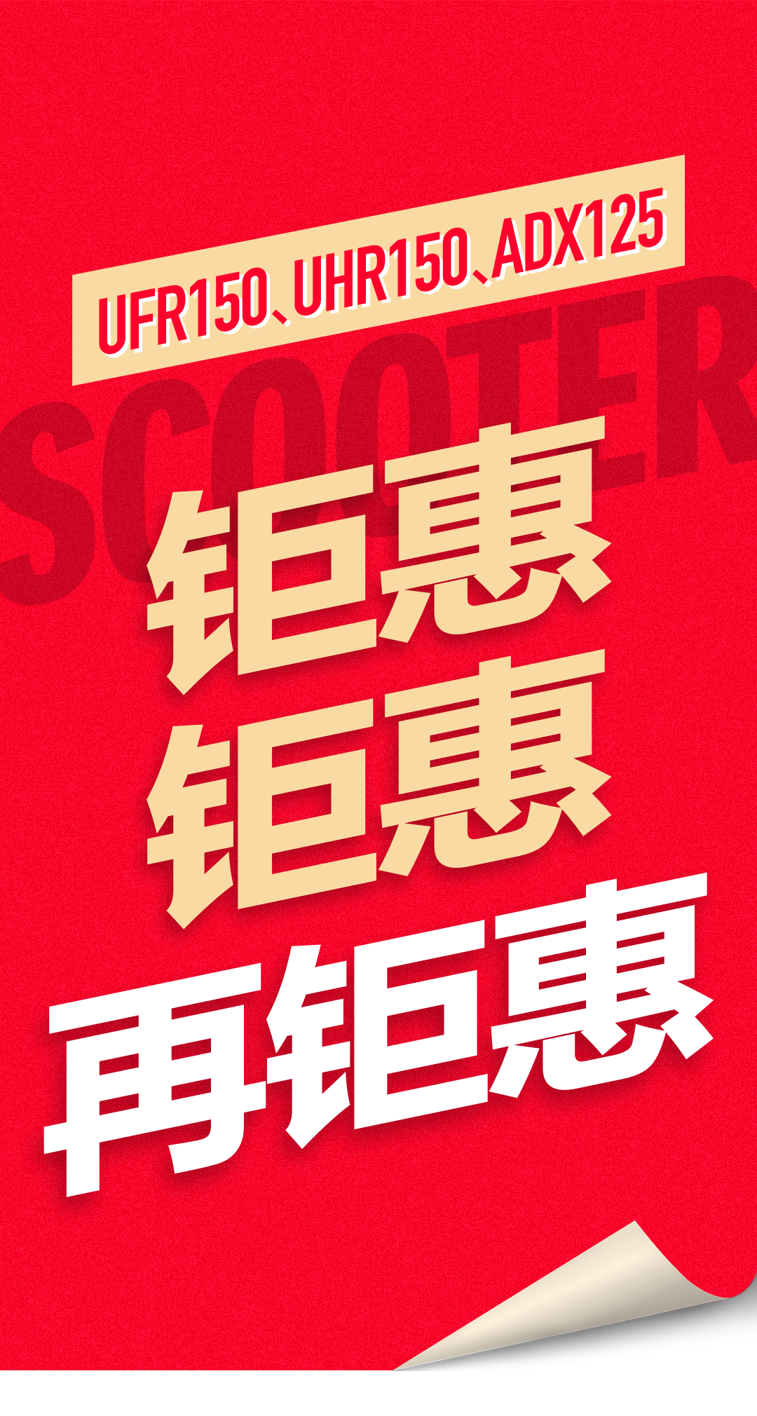 UFR150、UHR150、ADX125:钜惠、钜惠、再钜惠!