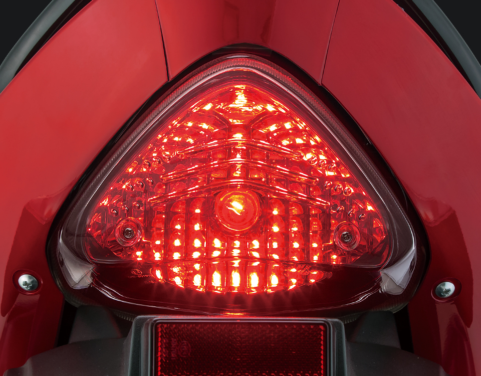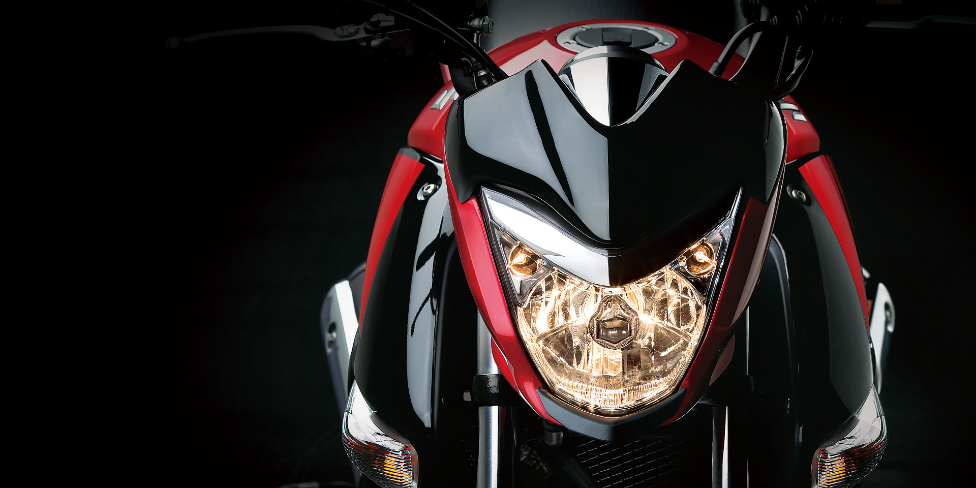充满肌肉感的大油箱,流线设计,给人霸气印象;前转向灯设计源自B-King,内置于油箱罩。
