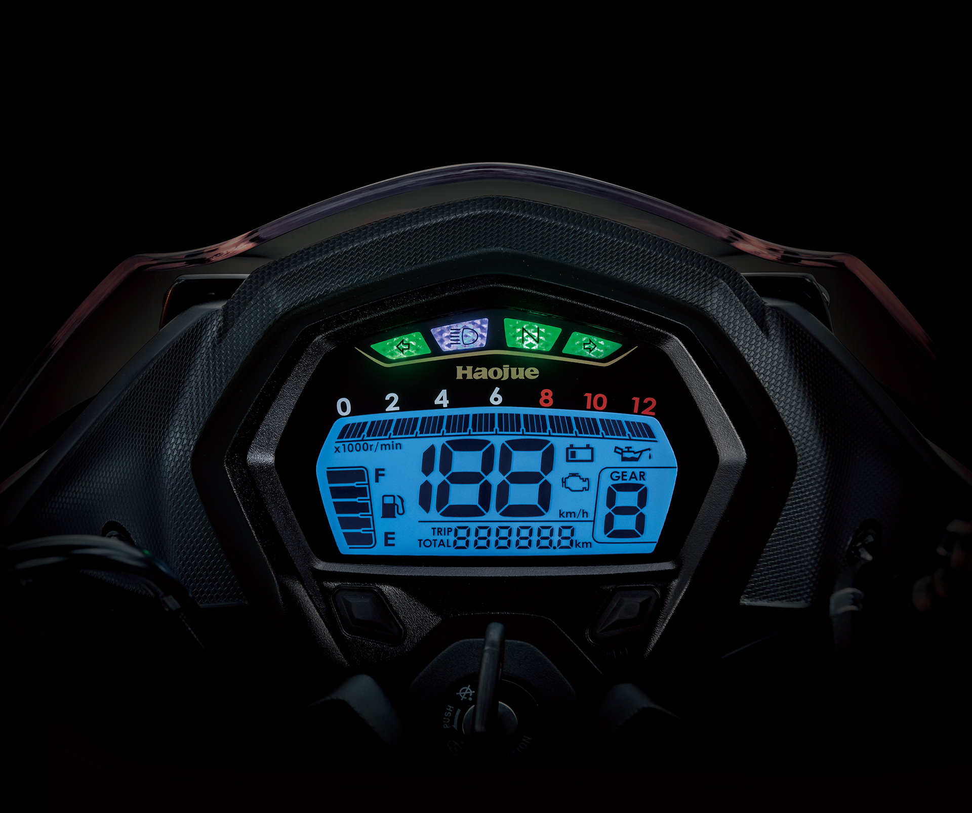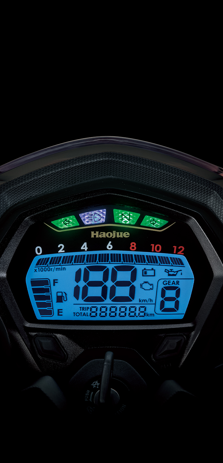 超大液晶显示屏,动感格段式转速表及五段数码油位显示,并具有MI故障指示器、电压警示、机油更换提示等功能,即时信息,尽在掌控。