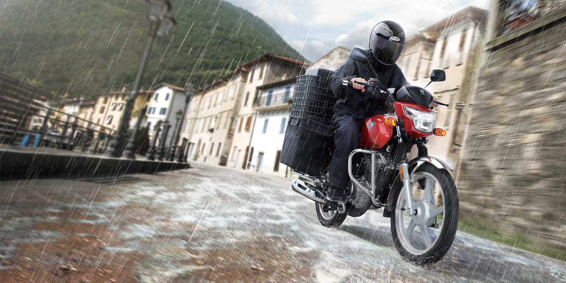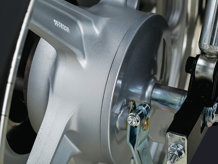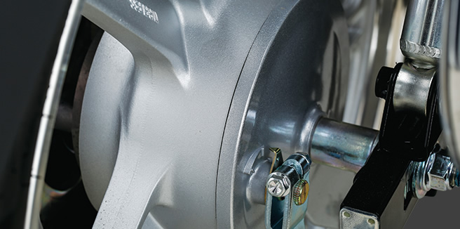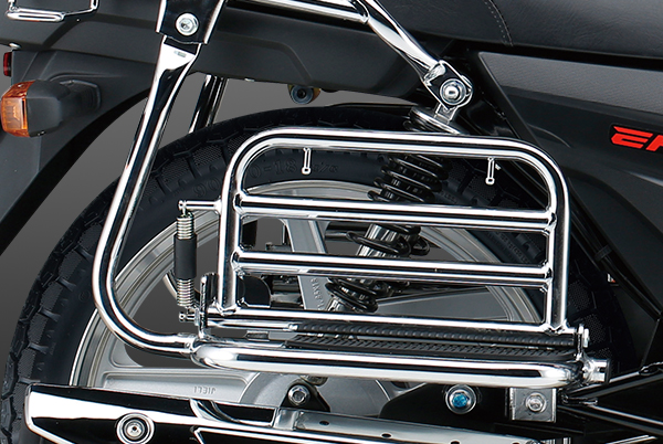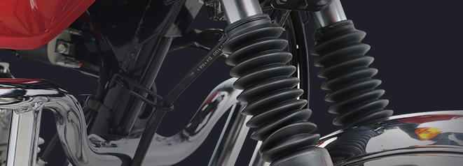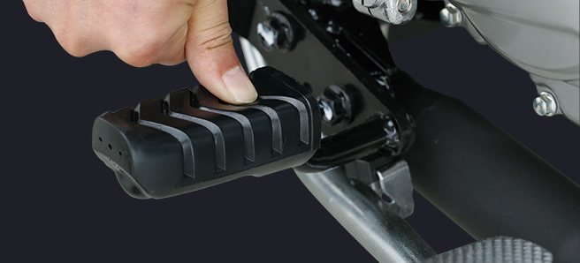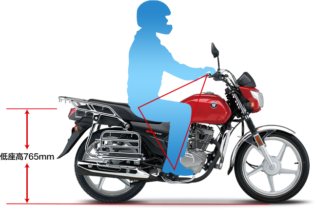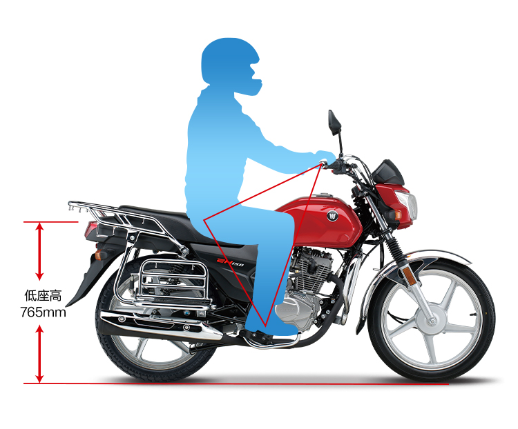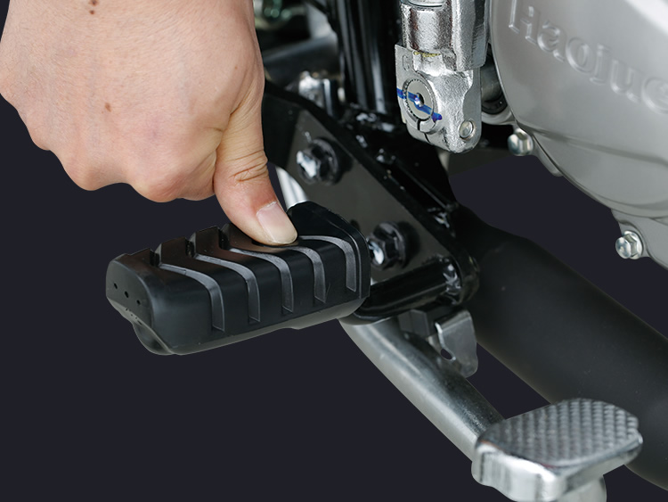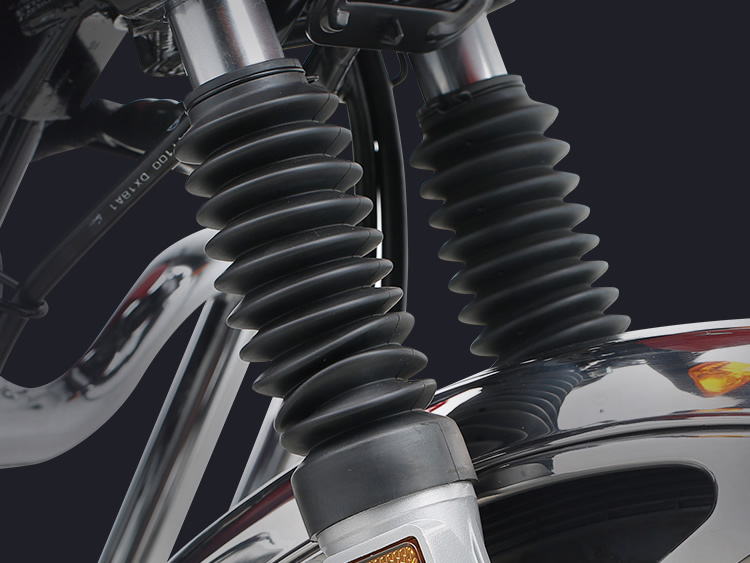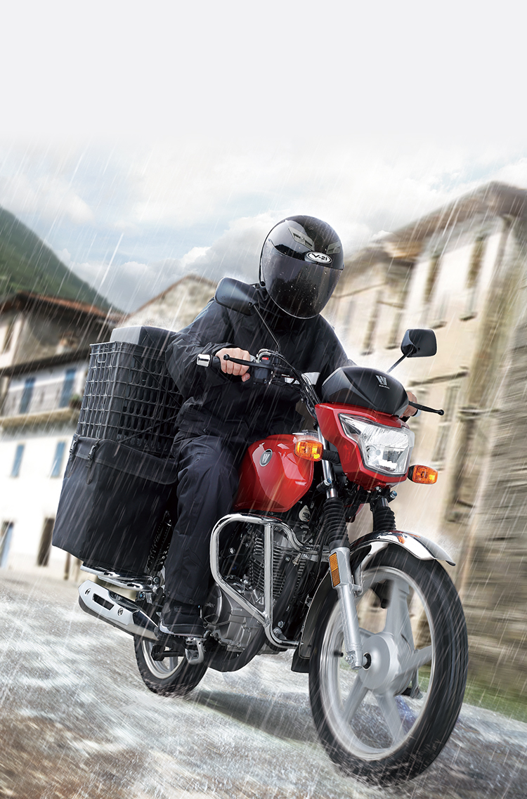 符合人机工程学的直立坐姿,驾驶姿势舒适自然;配合长行程后减振和中空前搁脚,长时间载重驾驶不易疲劳。精心设计前减振防尘罩、加宽前后挡泥板等,适应全天侯全路况,不惧跋山涉水,风雨无阻。