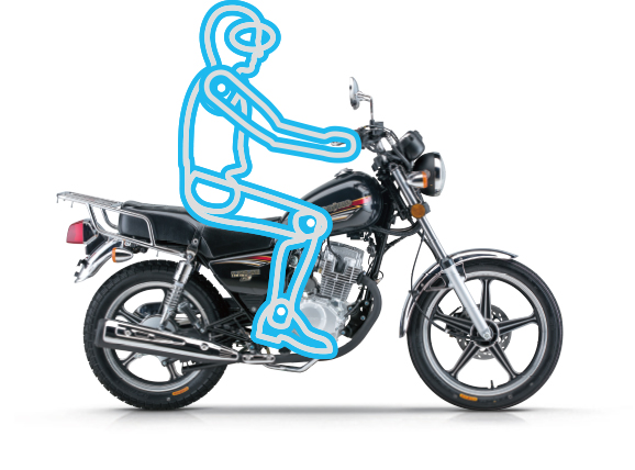 2021版豪爵HJ125-8系列坐姿图接近自然状态的坐姿,不仅长途驾驶能保证手臂、腰背和腿脚轻松,而且能很好保证承载的舒适性。